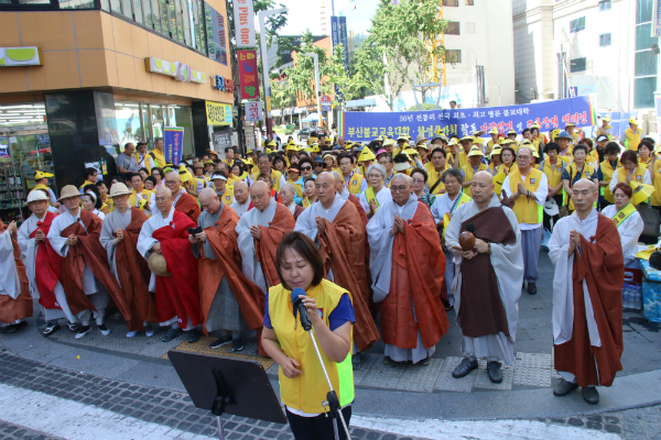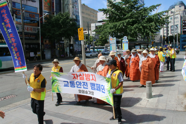 부산불교교육대학(학장 범혜스님)과 화엄승가회(회장 자인스님)가 오늘(8월27일) ‘자살 및 교통사고 없는 아름다운 부산 만들기 캠페인’을 진행했다.