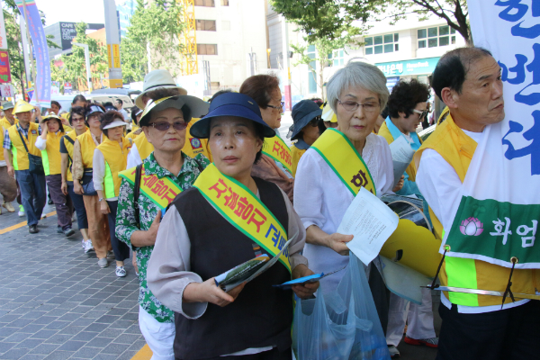 화엄승가회와 부산불교교육대학 재학생, 졸업생 등 200여 명은 부산 서면 일대에서 ‘자살 예견신호와 대처법’ 과 ‘운전자와 보행자가 지켜야할 교통 문화질서’ 등을 담은 전단지 3000여 장을 시민에게 전달했다.