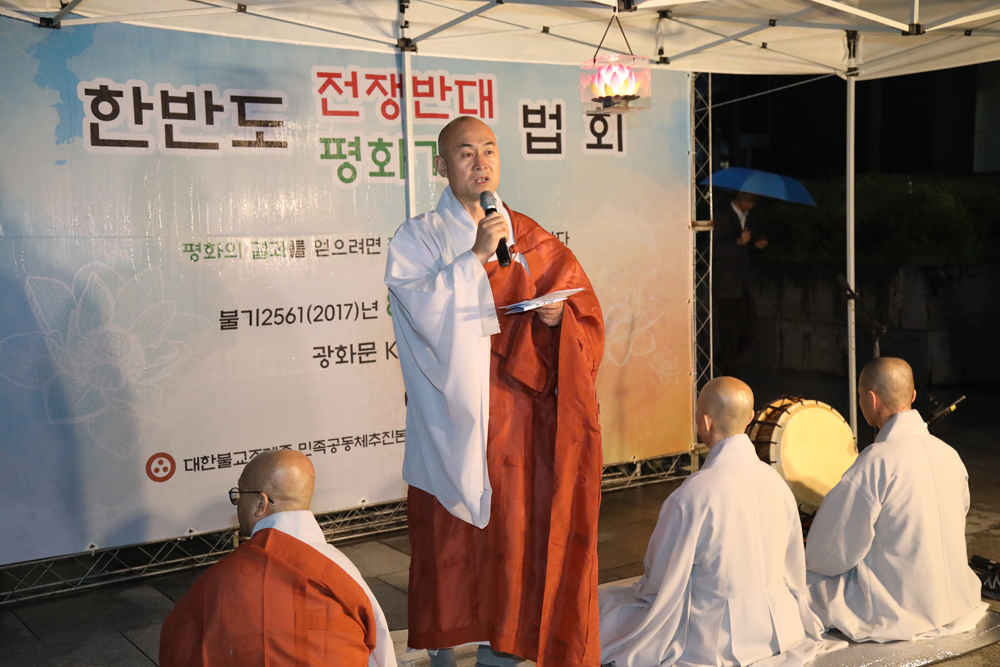 민추본 사무총장 진효스님은 “법회를 통해 전쟁을 막고 평화실현을 위한 염원을 대중들과 함께 모으고자 한다”며 “한반도의 항구적 평화를 위해 문재인 정부는 실질적인 해법을 내놓아야 한다”고 강조했다.