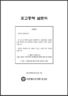 또 현재 포교원 개발 예정인 중점 사업의 우선순위 외에 △포교원에서 관리운영하고 있는 제도 개선 방향 △포교단체 및 신도단체 활성화를 위한 중점사항 △어린이청소년 포교 활성화를 위한 제언 △포교예산의 확충방안 △포교의 미래를 위해 관심을 기울여야 할 분야 등에 대한 문항도 포함돼 있다.